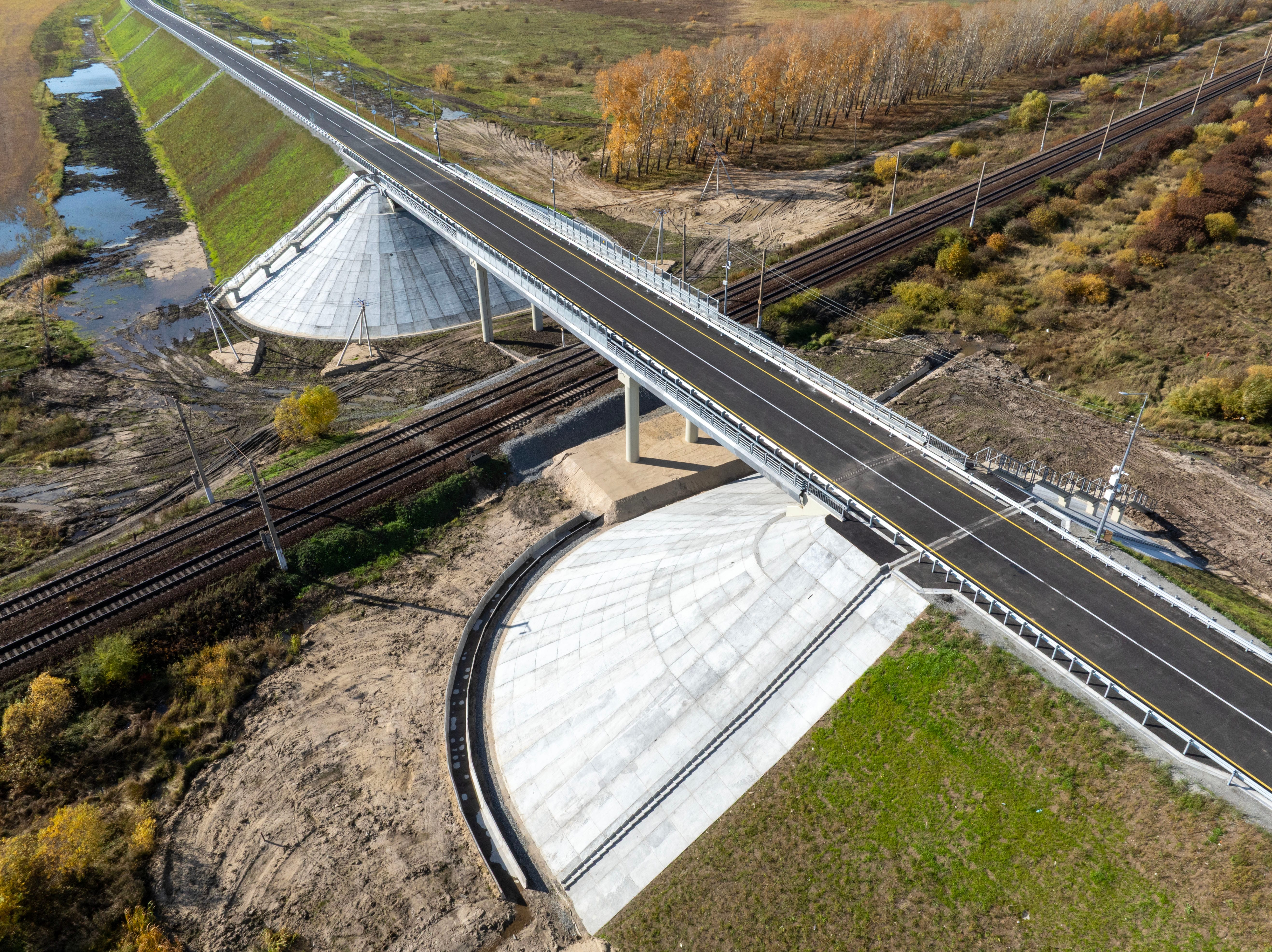 Продолжаются строительно-монтажные работы и на других объектах, многие из которых находятся в высокой степени готовности, часть мостов и путепроводов готовятся к сдаче в эксплуатацию.